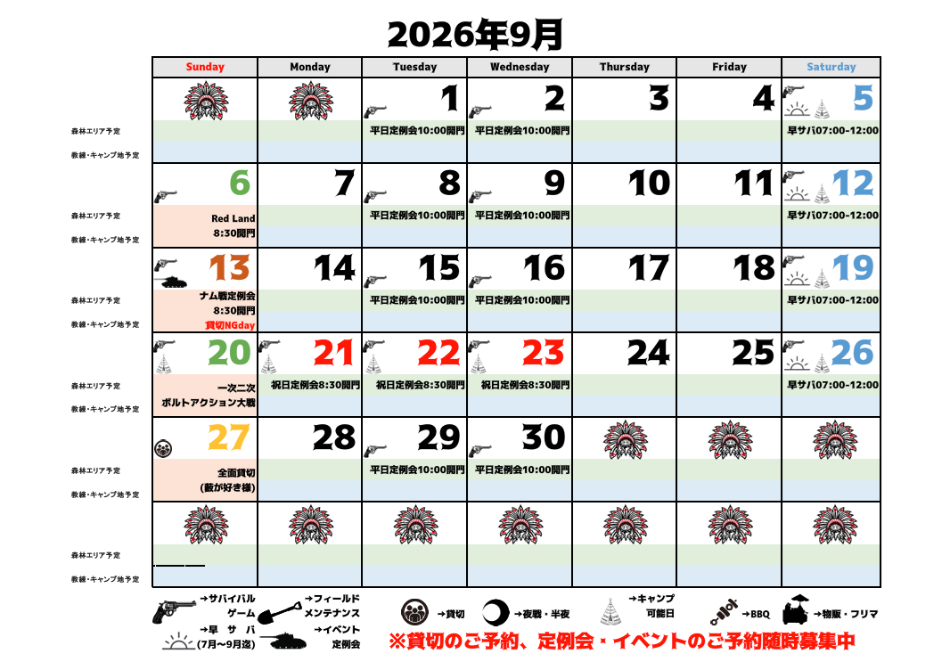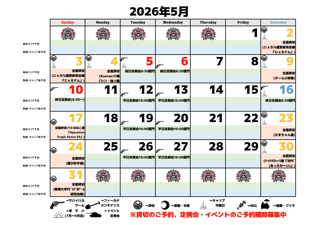 千葉市若葉区に1万坪超の森林フィールド✨定例会参加だけでなく貸切・撮影会・キャンプ・BBQ等の予約も受付中!平日サバゲー、お得になっております♪企業様のレクリエーションにもご好評いただいております!野外ステージ・屋根付き観客席も完備!