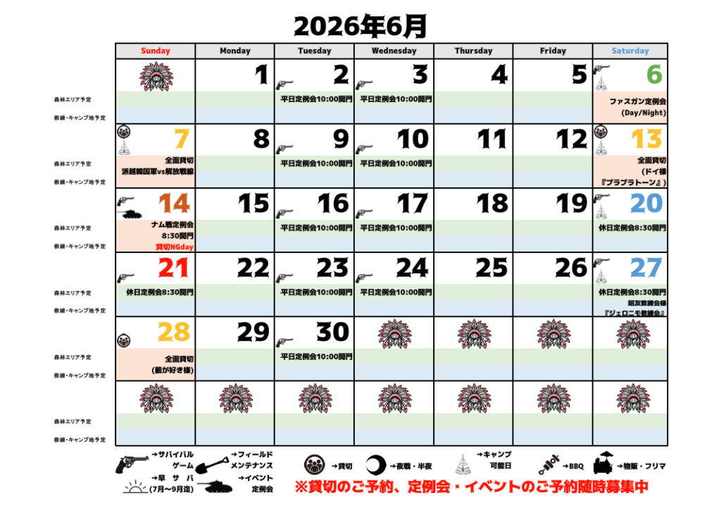 貸切のご予約やイベント情報などを追加いたしましたので2025年11月-2026年6月までの予定表を更新致しました。