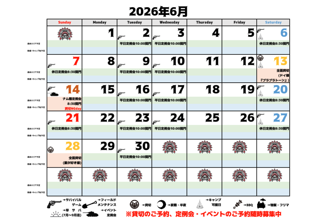 貸切のご予約やイベント情報などを追加いたしましたので2025年11月-2026年6月までの予定表を更新致しました。