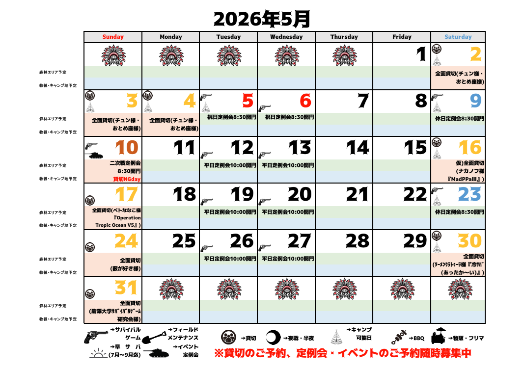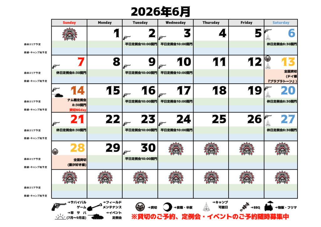 2026年3月から2026年12月までの予定表の情報と表示形式を更新致しました。貸切やイベントが入りましたら予定が追加される場合も御座います。貸切・イベント時以外は定例会の日も貸切可能となります。貸切予約は原則、日曜は1週間前まで・それ以外は3日前19:00までとなります。料金の詳細は料金をご覧下さい。