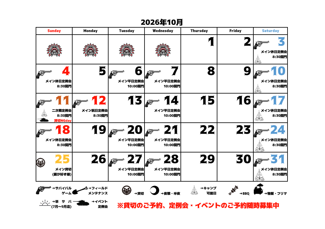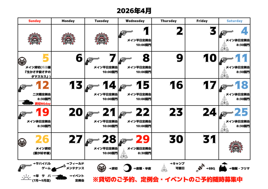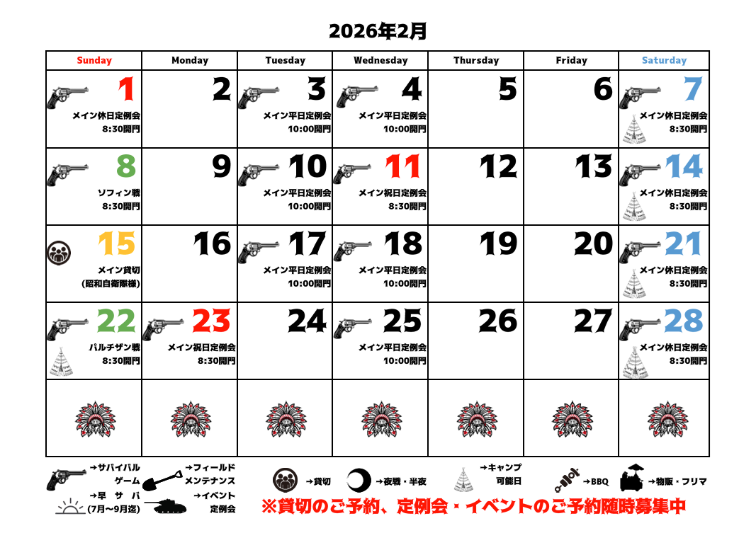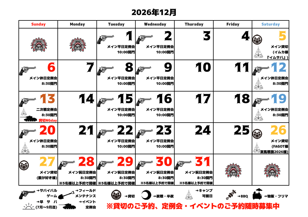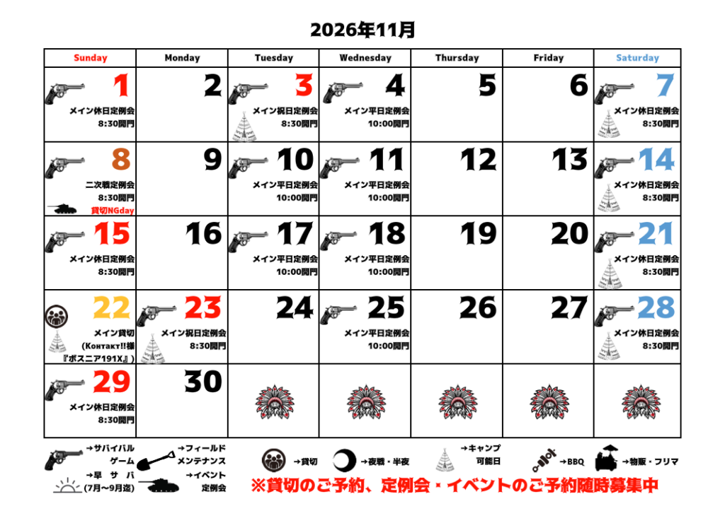 貸切のご予約やイベント情報などを追加いたしましたので2025年11月-2026年6月までの予定表を更新致しました。
