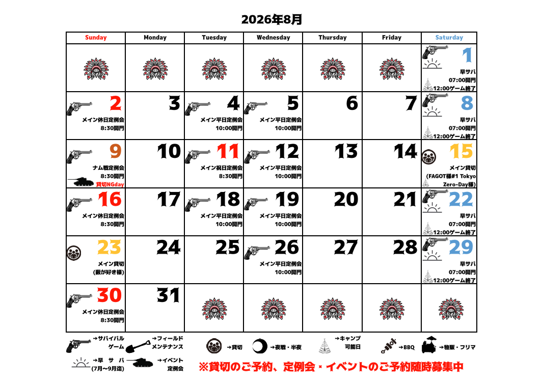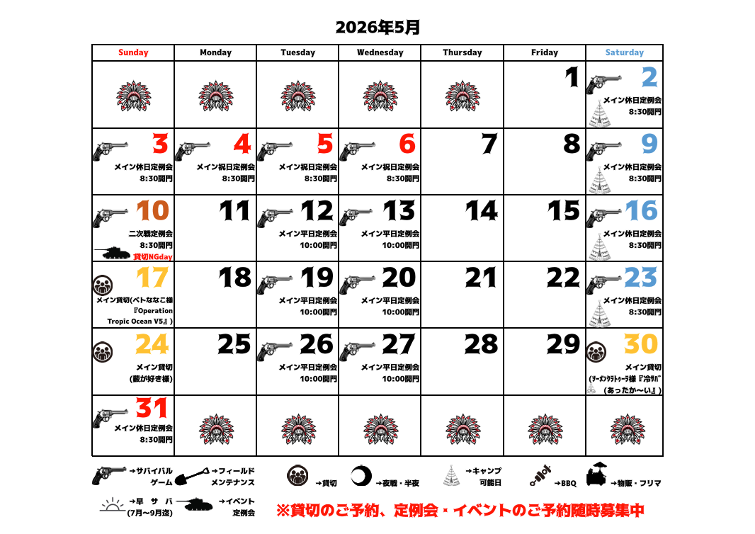 2026年1月から2026年12月までの予定表の情報を更新致しました。貸切やイベントが入りましたら予定が追加される場合も御座います。貸切・イベント時以外は定例会の日も貸切可能となります。貸切予約は原則、日曜は1週間前まで・それ以外は3日前19:00までとなります。料金の詳細は料金をご覧下さい。